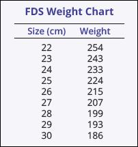 Maximum weight is 300 lbs. for any size. FDS feet are subject to a materials/labor surcharge of 10% when the weight exceeds the FDS Weight Chart.